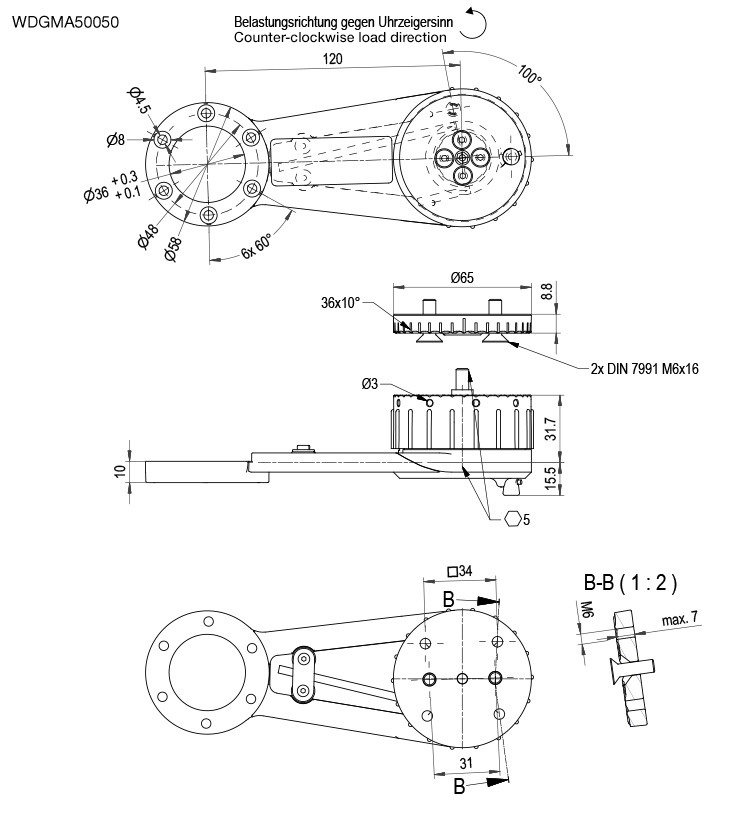 Dirección de carga en sentido antihorario