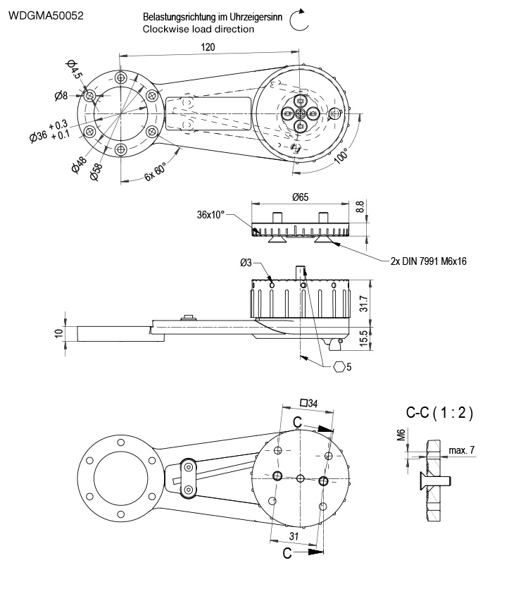Dirección de carga en sentido horario