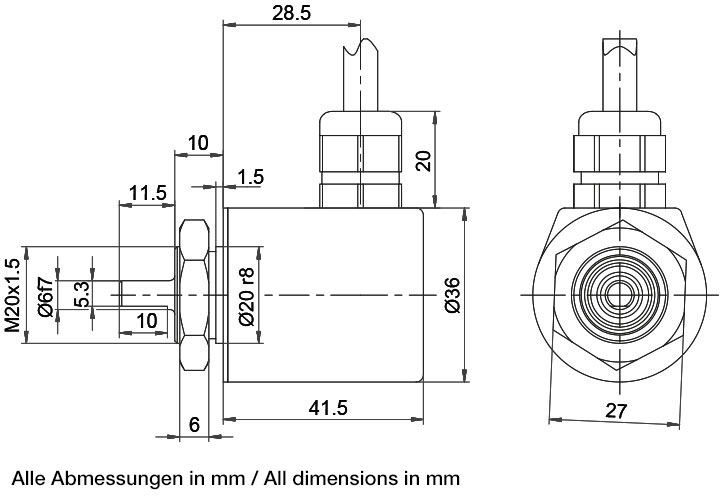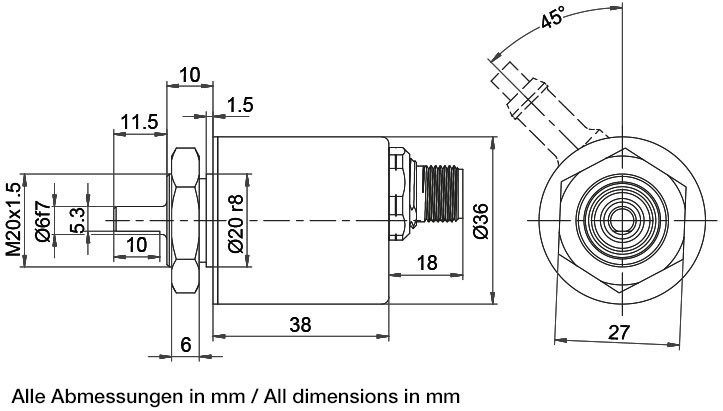 De forma opcional, el encoder WDGI 36S también está disponible con una membrana de compensación de la presión. Esto evita que con niveles de humedad elevados el agua pueda penetrar en la carcasa del encoder.